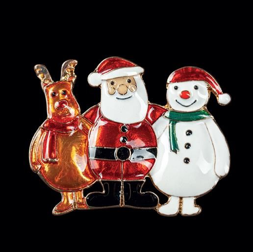 Brosche Weihnachtstrio, Größe ca. 50x35 mm, vergoldet - bunt bemalt