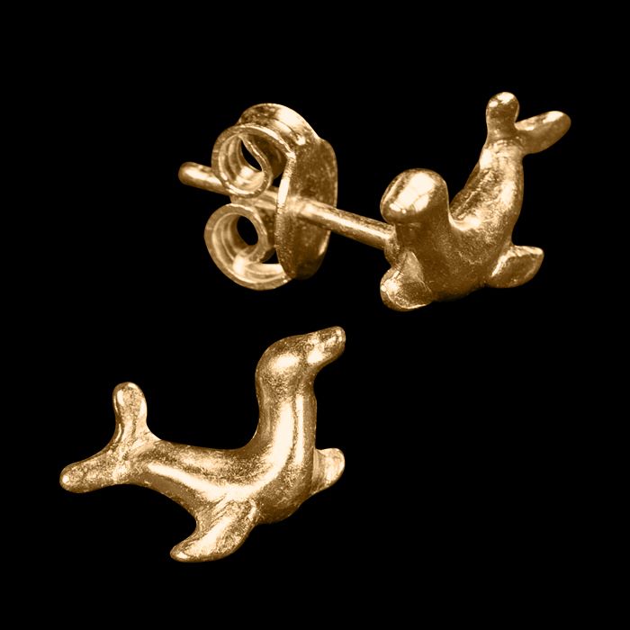 Ohrstecker Seehund, ca. 8 mm hoch x 10 mm breit, matt versilbert oder 22 Karat matt vergoldet, anlaufgeschützt
