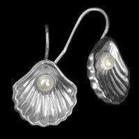 Ohrhänger mit einer Muschel und einer kleinen Perle in der Mitte, matt versilbert oder 22 Karat matt vergoldet, Muschel ca. 13 mm x13 mm groß, Perle ca. 3 mm, anlaufgeschützt