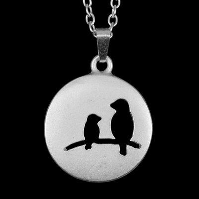 Runde Kette mit ausgeschnittenen Vögeln auf einem Ast, Durchmesser des Anhängers ca. 20 mm, feine Ankerkette Länge 42 cm, matt versilbert, anlaufgeschützt