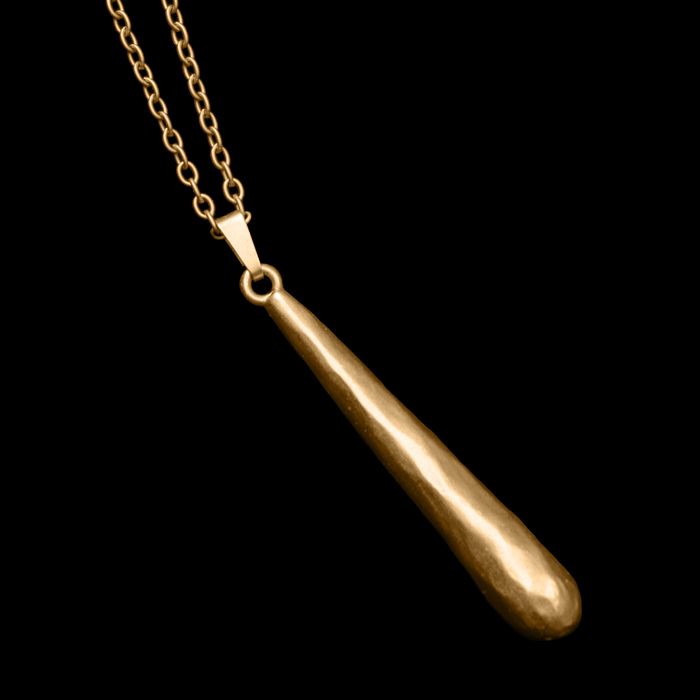 Kette mit großem tropfenförmigen Element, ca. 4 cm lang, feine Ankerkette 42 cm lang mit Karabiner, 22 Karat matt vergoldet, anlaufgeschützt