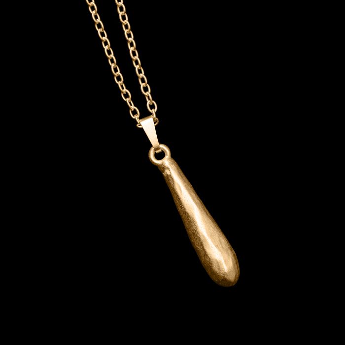 Kette mit kleinem tropfenförmigen Element, ca. 2,5 cm lang, feine Ankerkette ca. 42 cm lang mit Karabiner, 22 Karat matt vergoldet, anlaufgeschützt