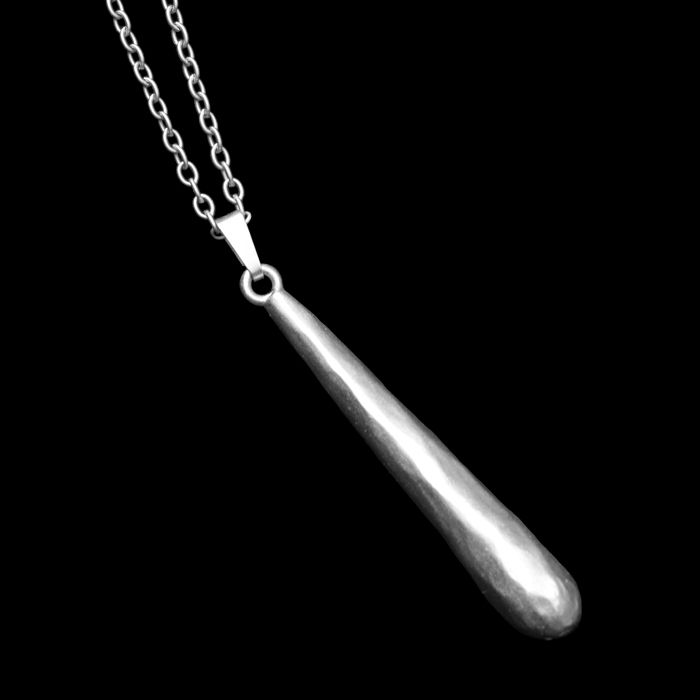 Kette mit großen tropfenförmigen Element, ca. 4 cm lang, feine Ankerkette ca. 42 cm lang mit Karabiner, matt versilbert, anlaufgeschützt