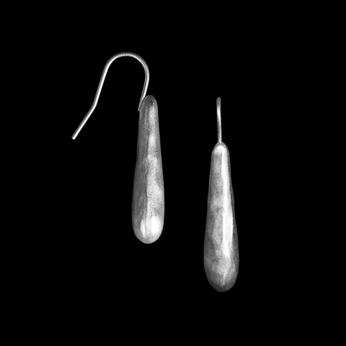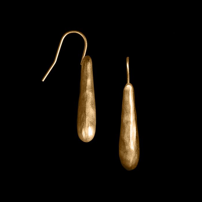 Ohrhänger mit kleinem tropfenformigem Element, Länge 2,5 cm plus Ohrhaken, matt versilbert oder 22 Karat matt vergoldet, anlaufgeschützt