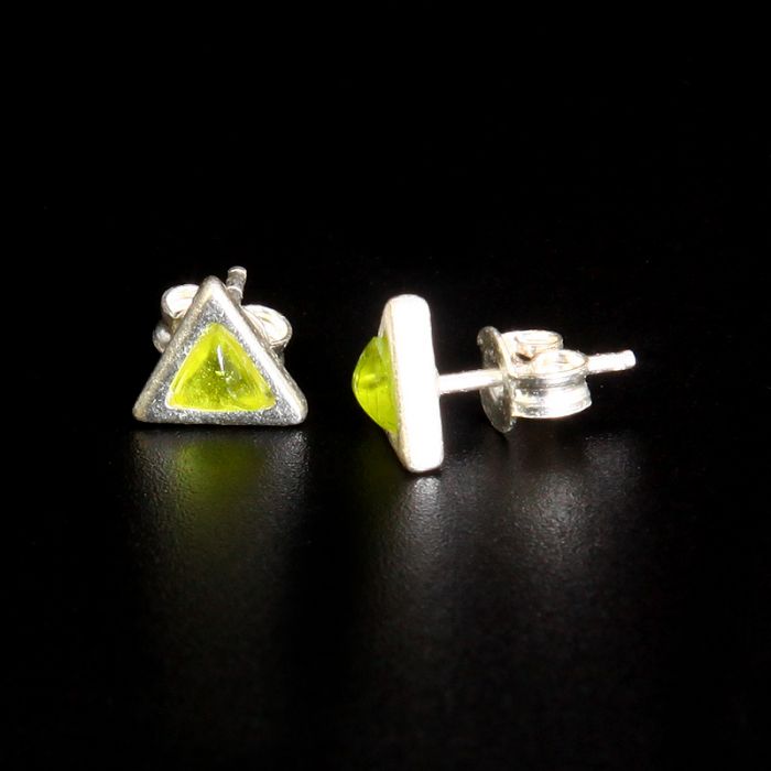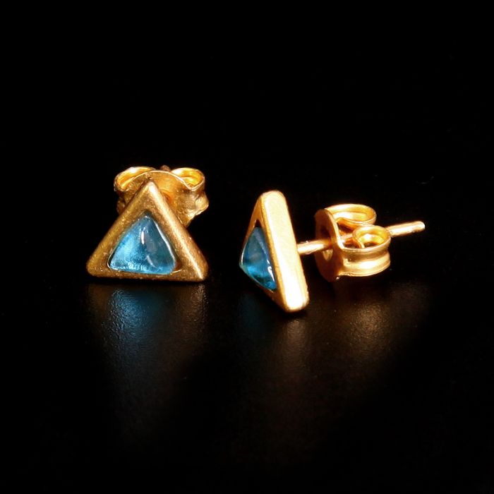 Ohrstecker dreieckige Form, schmaler Rand, mit leuchtendem Glasstein, Durchmesser gesamt ca. 7 mm, Glasstein ca. 4 mm, matt versilbert oder 22 Karat matt vergoldet, anlaufgeschützt